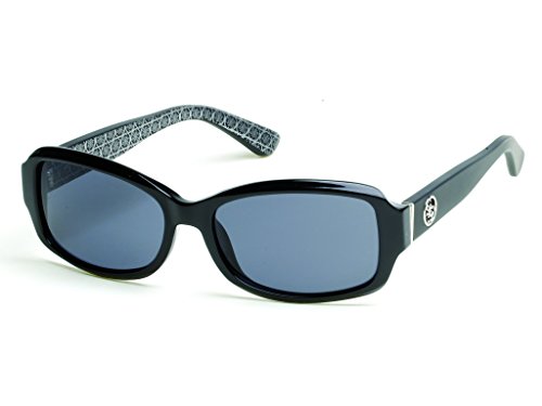 GUESS Women's Gu7410 Rectangular Sunglasses, Shiny Black and Smoke, 55 mm