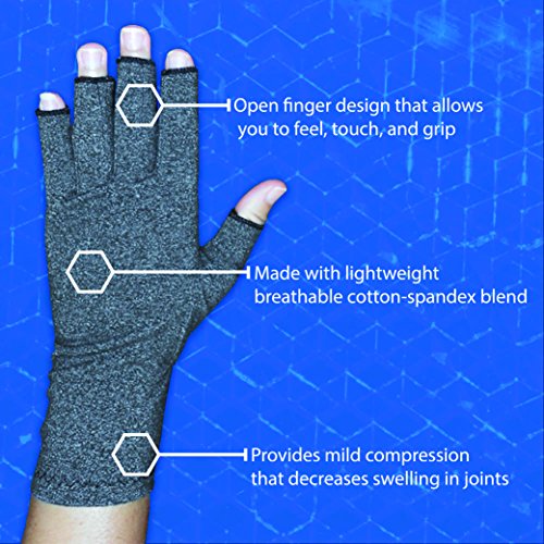 ReleaseDate : 2017-10-24 Studio : Richardson Products, Inc. Publisher : Richardson Products, Inc. Binding : Health and Beauty Product Description Rehabilitation Advantage Arthritis Compression Gloves provide noninvasive relief from joint pain. Individuals who struggle with poor circulation or neuropathy can benefit from these gloves. Depending on your needs, these gloves can be worn during the day or at night. You can use these gloves at the office, around the house, when performing everyday chores, or when participating in leisure activities. Don't let your joint pain restrict your lifestyle; find targeted relief with these quality Compression Gloves. 0