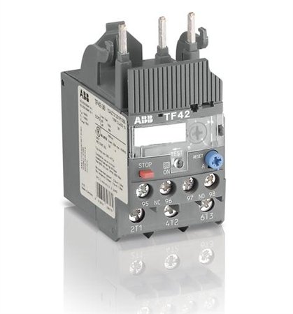 Studio : ABB Publisher : ABB Product Description ABB TF42-5.7 4.20 - 5.70 Amp, IEC, Overload Relay 4.20 - 5.70 Amp, IEC, Overload Relay, Type: Thermal Bi-Metallic, Trip Class 10. Selectable Manual or Automatic Reset. For use with AF Series, AF9 - AF38 Frame Contactors. 0
