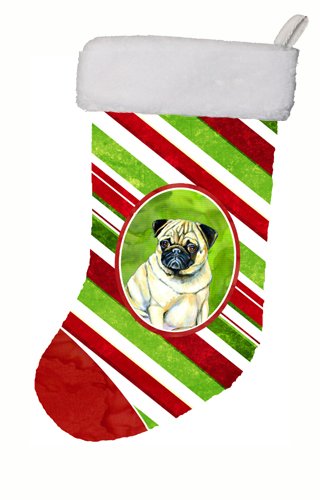 Caroline's Treasures LH9252-CS Pug Candy Cane Holiday Christmas Stocking, 11 x 18", Multicolor