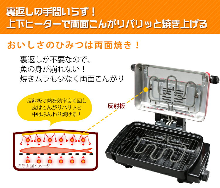 また、料理を上下両面から焼くので裏返す手間がいりません。