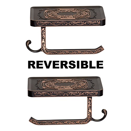 Reversible Bathroom Toilet Paper Holder with Phone Shelf and Hook, Vintage Decor Style (Oil Rubbed Bronze)