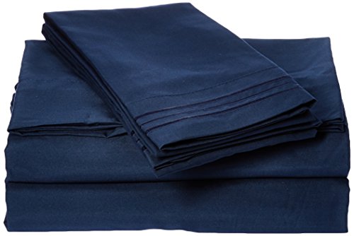 -. Binding : Misc. -. Brand : Elegant Comfort -. Color : Navy -. EAN : 0765573768510 -. Feature : 1 Flat Sheet (108" x 102") 1 Fitted Sheet (72" x 84") and 2 Standard Pillow Cases (20" x 40") / Fits mattresses up to 14" - 16" deep with elastic all around the fitted sheet / Micro fiber sheets are as soft as 1,500 thread count Egyptian cotton / Easy care sheets are machine washable and require no ironing / Elegant Comfort - High Quality and has a breathable weave -. Label : Elegant Comfort -. Manufacturer : Elegant Comfort -. Model : 135RW 1500-Cali King-Navy -. MPN : 135RW 1500-Cali King-Navy -. PackageQuantity : 1 -. PartNumber : 135RW 1500-Cali King-Navy -. ProductGroup : Home -. ProductTypeName : HOME -. Publisher : Elegant Comfort -. Size : California King -. Studio : Elegant Comfort -. Title : Elegant Comfort 4-Piece 1500 Thread Count Egyptian Quality Bed Sheet Sets with Deep Pockets, California King, Navy -. UPC : 765573768510