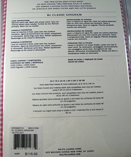 -. Feature : 100% Cotton / Monaco Pink Gingham Check / Will fit most mattresses up to 18" deep / 39"W x 76"L x 15"D / Machine Washable