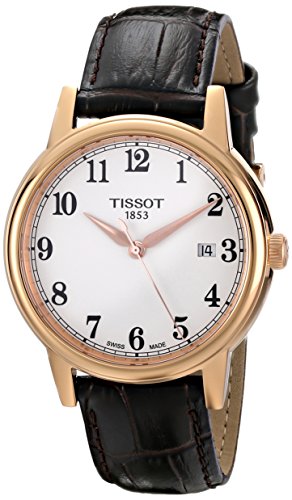 -. Binding : Watch -. Brand : Tissot -. Color : Rose Gold-Tone -. Department : mens -. EAN : 7611608262849 -. Feature : Rose gold-tone watch with synthetic leather croco-grain strap and white dial with Arabic numeral markers and date window / 40 mm rose-gold case and anti-reflective sapphire dial window / Swiss-quartz movement with analog display / Synthetic leather band with buckle closure / Water resistant to 30 m (99 ft) -. Label : Tissot -. Manufacturer : Tissot -. Model : T0854103601200 -. MPN : T0854103601200 -. PackageQuantity : 1 -. PartNumber : T0854103601200 -. ProductGroup : Watch -. ProductTypeName : WATCH -. Publisher : Tissot -. ReleaseDate : 2014-09-30 -. Studio : Tissot -. Title : Tissot Men's T0854103601200 Carson Rose Gold-Tone Watch with Faux-Leather Band