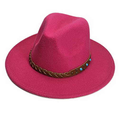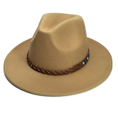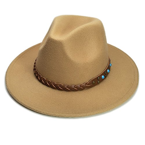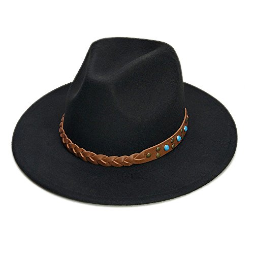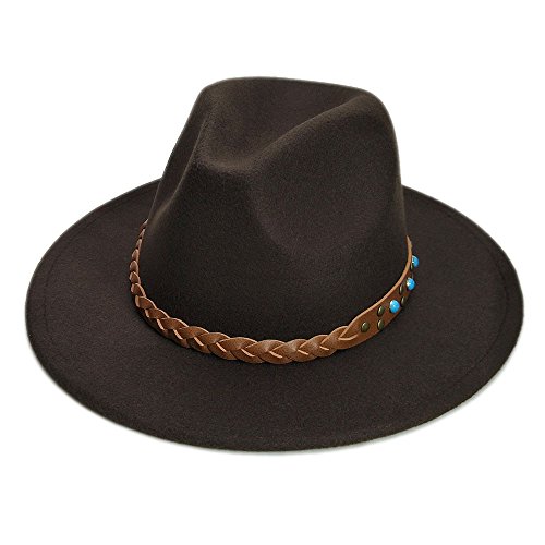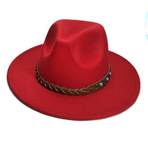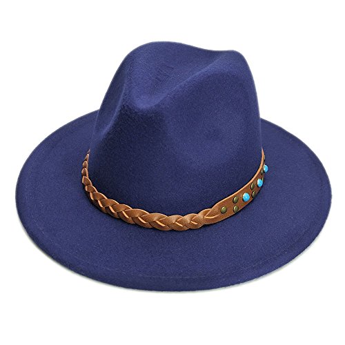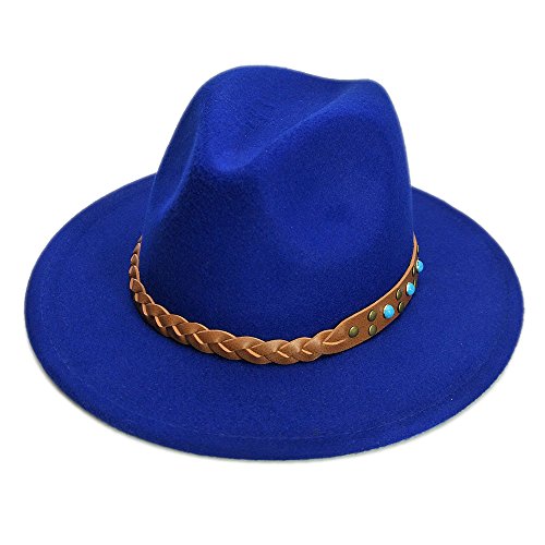(LUCKYLIANJI)/Accessories/Hats/DIRECT FROM USA/LUCKYLIANJI Women's Men's Retro Wool Felt Turquoise Belt Gangster Panama Fedora Hat 57cm