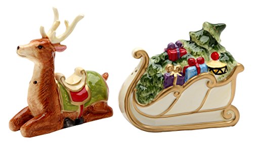 Cosmos 10690 4" High Deer with Sleigh Ceramic Salt and Pepper Set, Multicolor