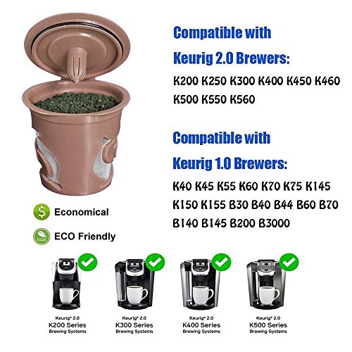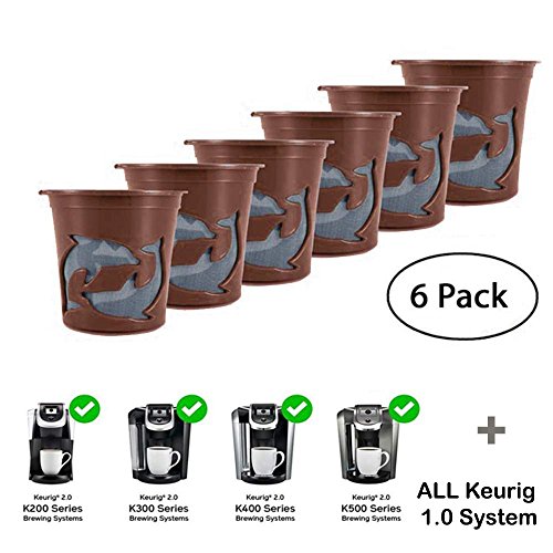 Refillable K-Cups Reuse Coffee Filters for Keurig Brewers - Fits K200, K300, K400, K500 Series and all 1.0 Brewers (Brown,6-Pack)