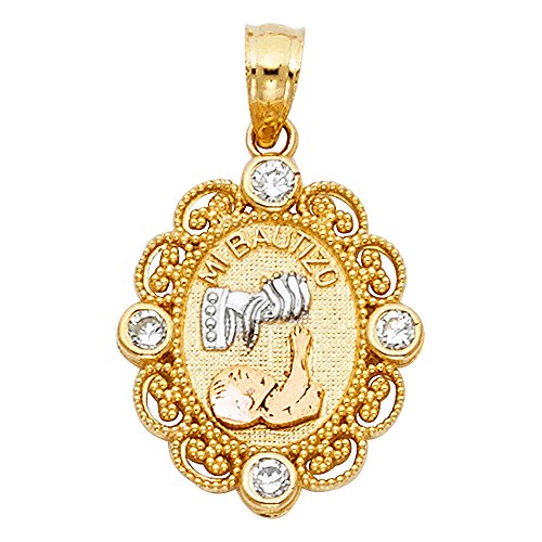 -. Title : 14k Tri Color Gold CZ Religious Baptism Pendant