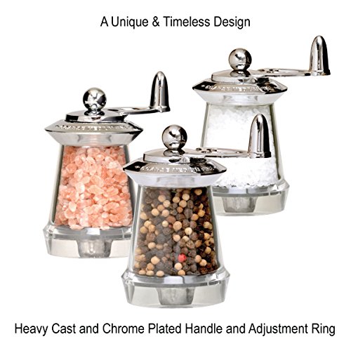 Studio : William Bounds Publisher : William Bounds Binding : Kitchen Product Description "Add the unmatchable flavor of fresh cracked pepper and crushed salt to any dish with a simple twist of the William bounds key mill. Don't let its size deter you; the key mill offers all the exclusive William bounds features in a more compact size. The combination of acrylic and chrome accents results in a classically elegant addition to any kitchen or tabletop. With its fully transparent body, this mill clearly displays What's inside and how much of it remains. Its wider base and tapered body allows for the perfect grip, while the top crank handle permits easy rotation in either right or left directions. The stainless and ceramic milling mechanism within the key mill prevents the mill from jamming or wearing out, while the three step adjustment ring easily distinguishes and sets the mill to fine, medium, or coarse output. Unlike pepper grinders, this mill is designed to crush rather than grind ingredients, our milling mechanism maximizes the additional fresh flavor of salts and spices in any dish. There are many imitations, but don't be fooled. The William Bounds, Ltd. key "WB-1" mill is the original designed by bill bounds. As with many of our products, bill bounds designed the key mill to exacting standards. He created a mill that works as beautifully as it looks. Made from the finest materials, with a clear acrylic top, solid metal parts, and Plating in the highest quality chrome; you will not find cheap plastic in our key mill. Then as now, the "WB-1" is made to last a lifetime, and we stand behind it with a lifetime warranty. If the mechanism ever malfunctions, or you find a manufacturing fault, we will replace it. And remember, our key mill is proudly made in the USA.". 0