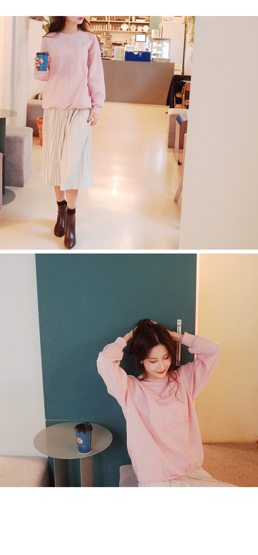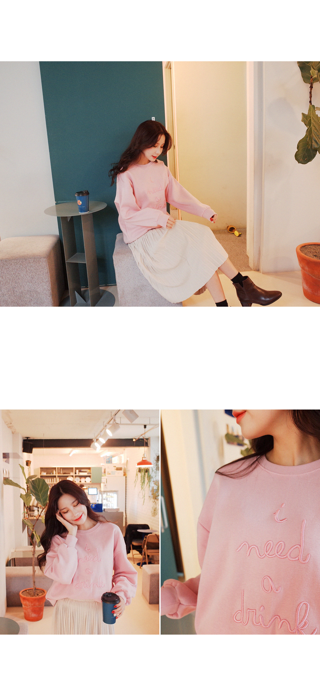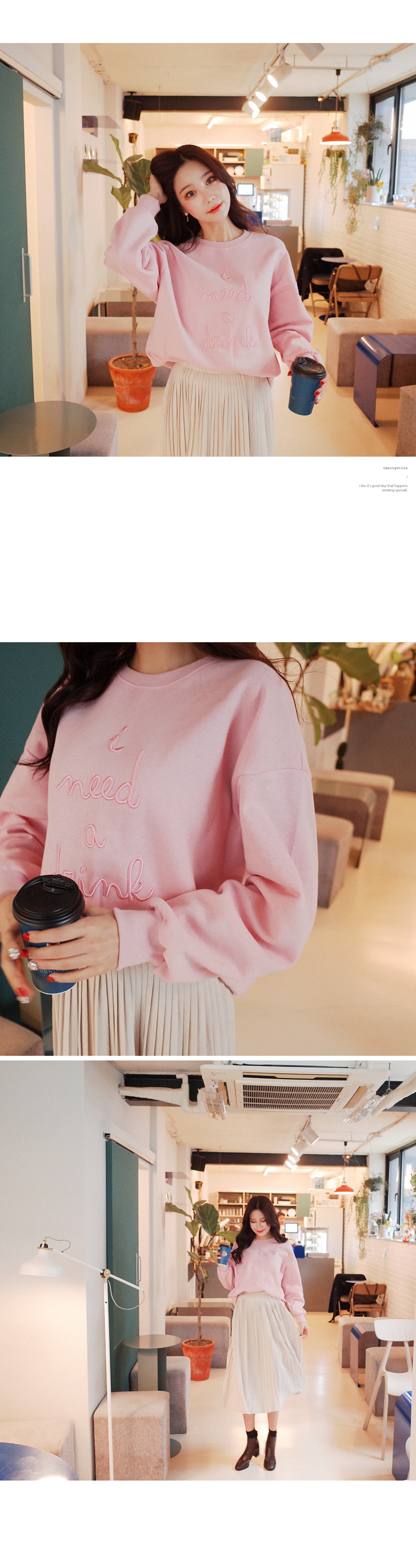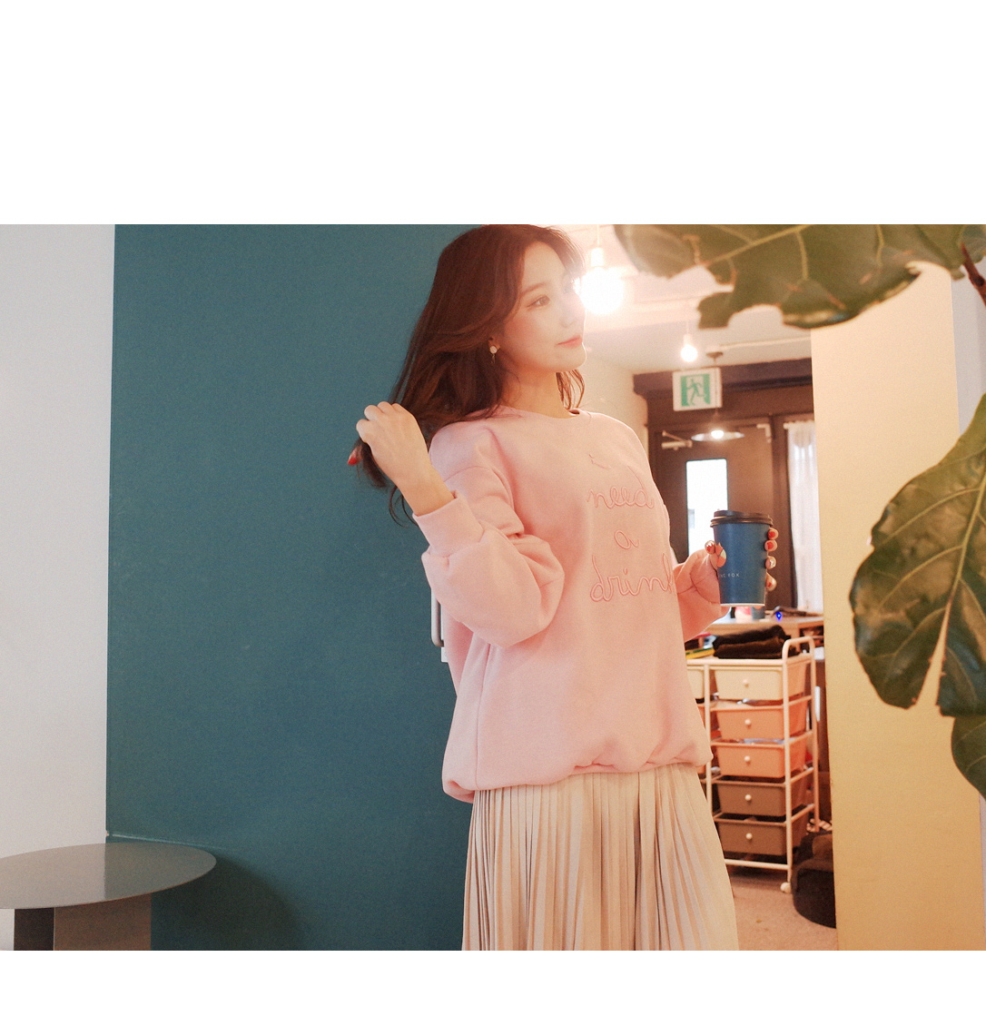 사랑스러운 컬러가 눈에띄는 기모 맨투맨입니다
