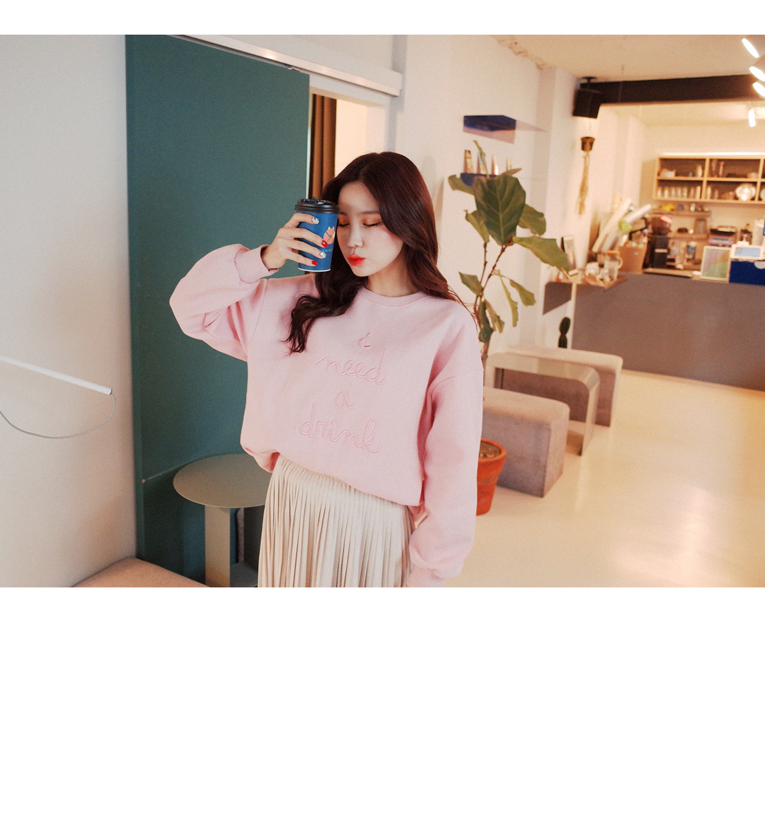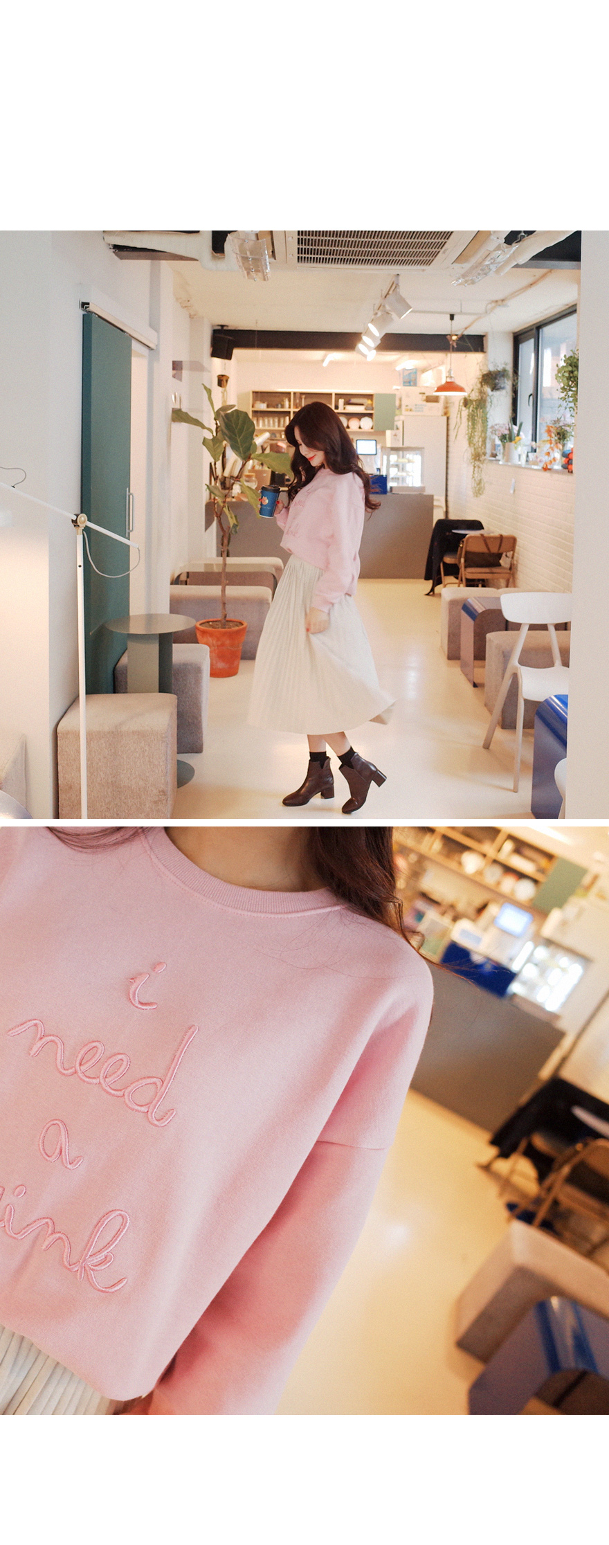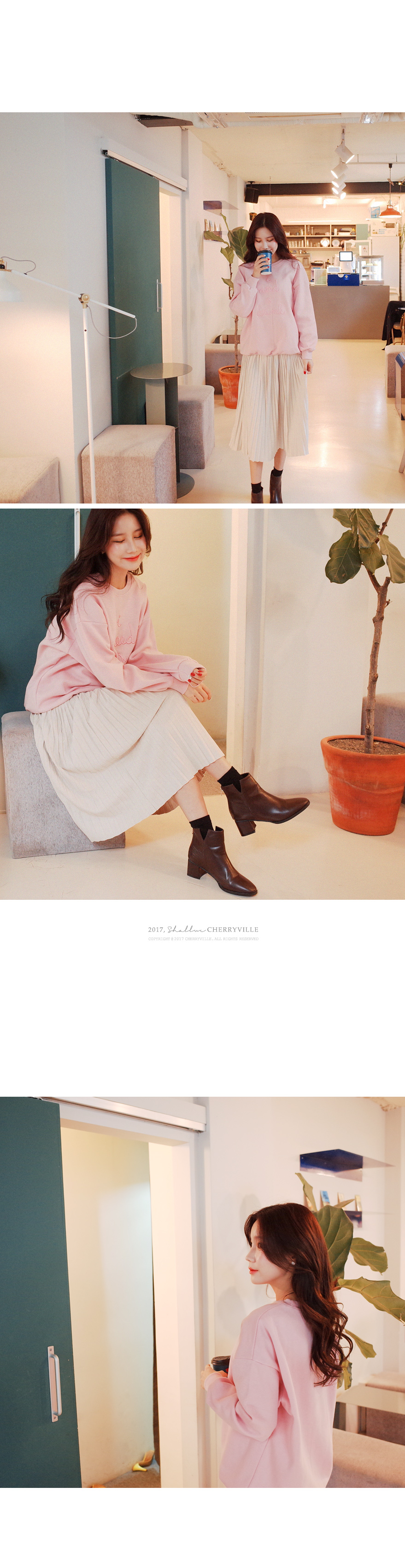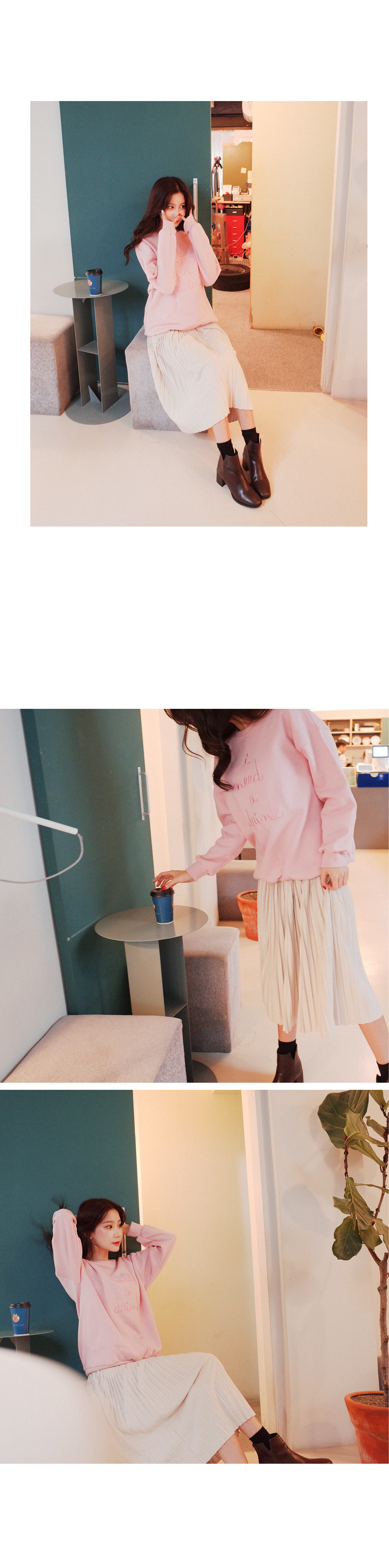 사랑스러운 컬러가 눈에띄는 기모 맨투맨입니다