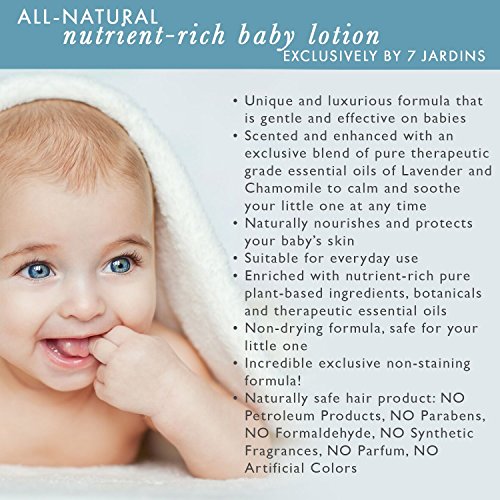 -. Title : 7 Jardins Natural Baby Pure Lotion - Daily Body Moisturizer for All Skin Types Enriched with Calendula, Chamomile and Lavender Essential Oils. 100% Safe and Sulfate Free - 8 oz.