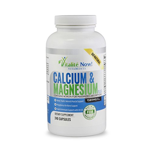 -. Feature : Vitalité Now! Calcium & Magnesium Plus contains your necessary bone builder daily intakes of calcium and magnesium along with Vitamin D in its best form (Vitamin D3) and phosphorus to help support bone health and strength / Vitamin D3 has been added to help in the passage and retention of calcium and also helps strengthen the immune system / Boron has also been added to help you absorb the ingredients your bones need to be strong and healthy / Adequate amounts of calcium with a balanced diet help reduce your risk of osteoporosis. Our premium quality bone health support supplement is ideal for both men and women / Go natural & healthy: Premium vitamins and supplements sourcing, testing, consistency, pill production & packaging in an FDA & GMP approved facility in the USA!