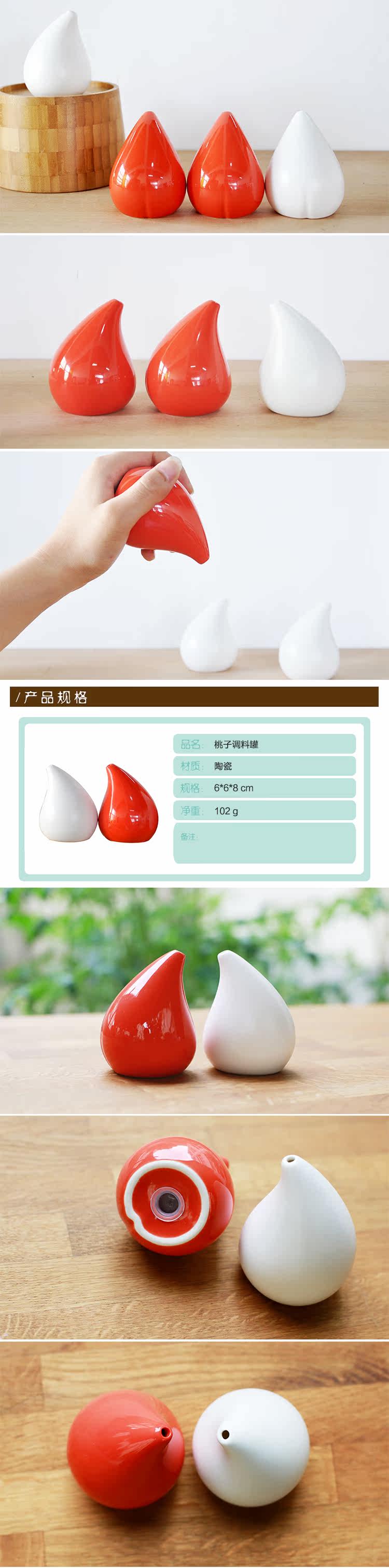 陶瓷调味瓶罐小巧桃子调料罐 家用密封烧烤餐桌调味品瓶