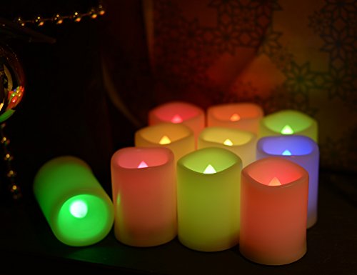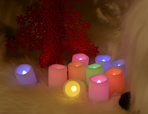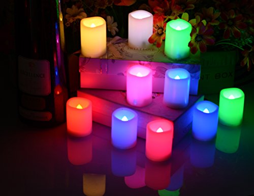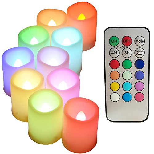 Mult Color changing LED Flameless votive Candles with Timer and Romote,100+H long Battery life,Realistic Melt Edge Pillar tealight for Wedding,Christmas, New Year's Day and Gifts(10 PCS of Ivory)