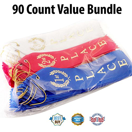 VALUE BUNDLE PACK: Each bundle comes with a total of 90 award ribbons: Thirty 1st place Ribbons (Blue), Thirty 2nd Place Ribbons (Red), and Thirty 3rd Place Ribbons (White)