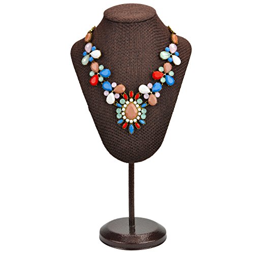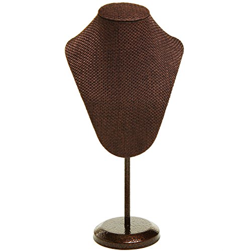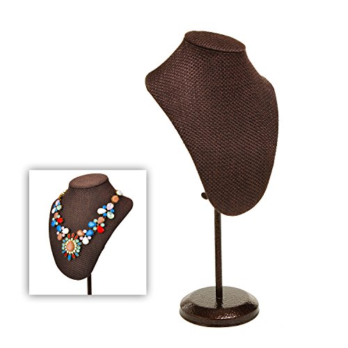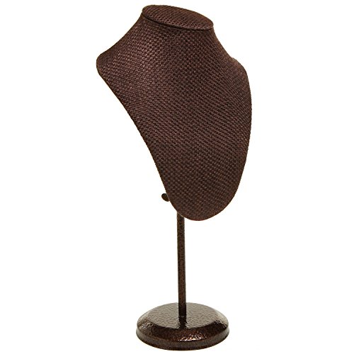 MyGift Brown Woven Fabric Freestanding Necklace Display Bust / Jewelry Stand w/ Adjustable Metal Stand