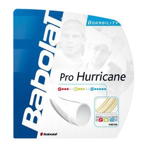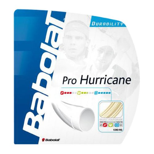 Studio : Babolat Publisher : Babolat Binding : Misc. Product Description For players looking for durability the Babolat Pro Hurricane 16 is designed to meet the needs of the biggest string breakers Featuring the exclusive Xtrem Futur Polymer the string elasticity is increased by 40 for greater playability Pro Hurricane features enhanced tension maintenance compared to standard polyester strings This string features an anti abrasion coating that enhances durability by resisting string notching Made for the most demanding string breakers Babolat has designed this string for a bit softer feel and more pop than the typical polyester A good choice for baseliners seeking a durable string good playabilityConstruction Extruded polyester monofilamentColor WhiteGauge 130mm 0