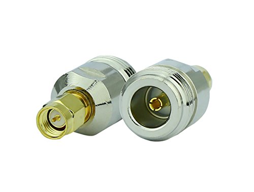 -. Feature : 1.Straight Adapter N Female ( hole in center, thread outside) to SMA male( pin indide, dehiscent circle) RF Coaxial Connector Adapter / 2.Impedance :50 ohm / 3.Material: Brass;silver tone adapter with great electrical conductivity and superior performance / 4.Commercial Grade Connector / 5.Package Content : 2 x N Female to SMA male Adapters