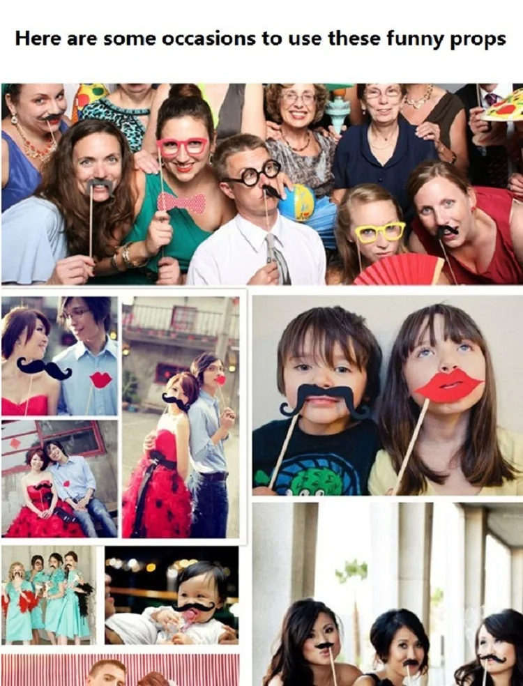 Product Name:17 pcs/Set u0026nbsp;Wedding Party Photography Props Funny Paper Hat Lip Glasses Mustache Wedding Supplies Santa's Beard