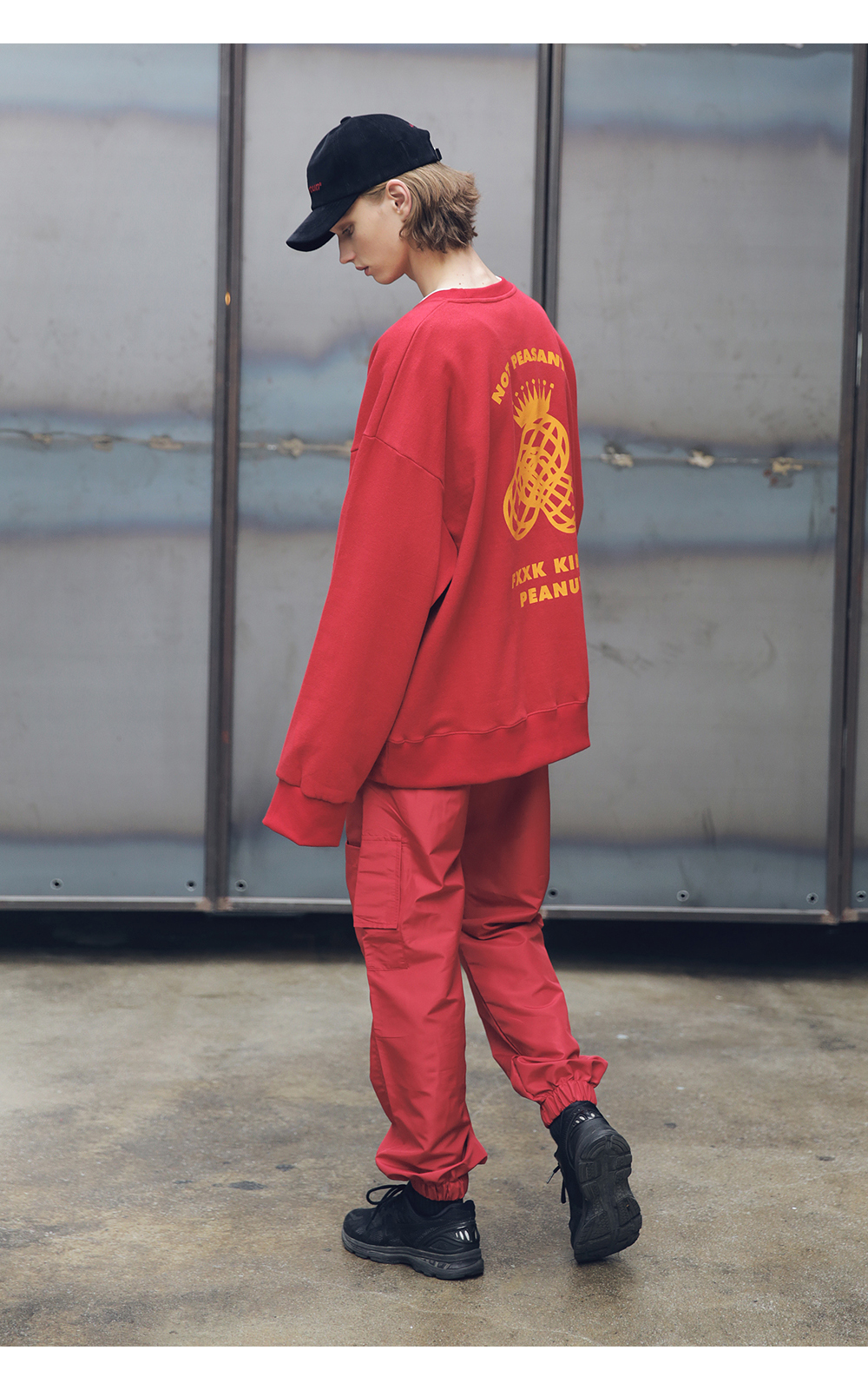 전체적인 라인의 형태와 핏감처리에 중점을 둔 루즈핏 제품입니다.