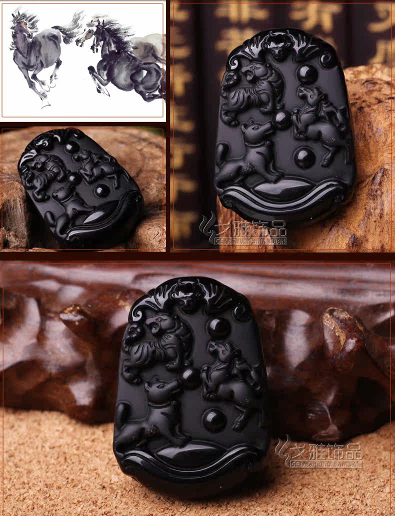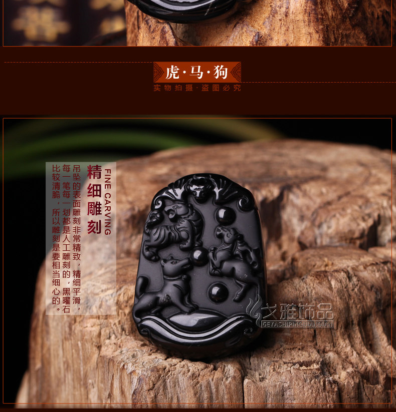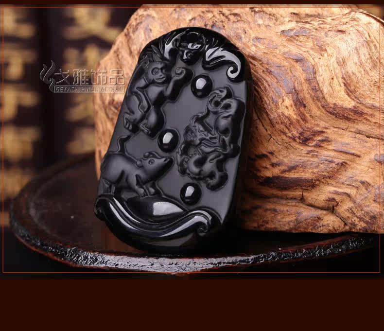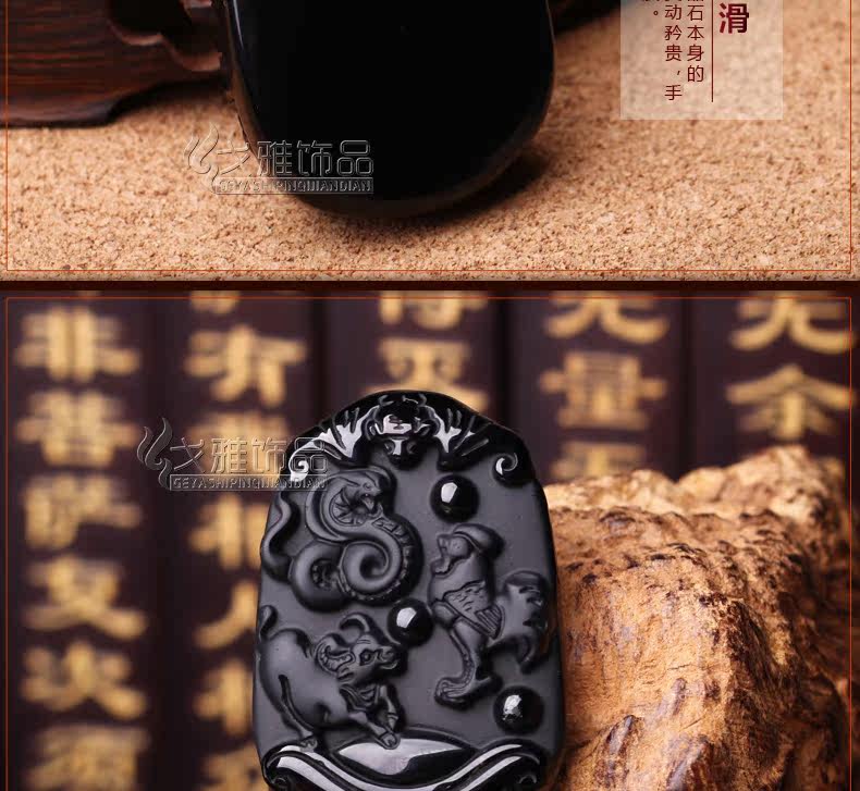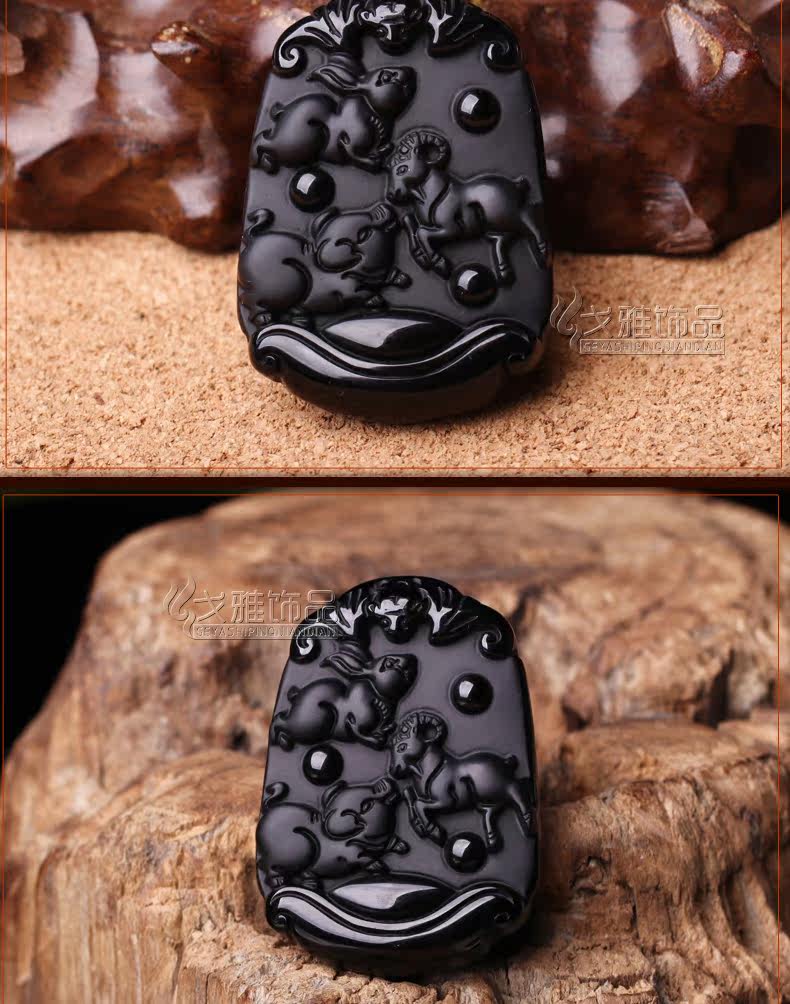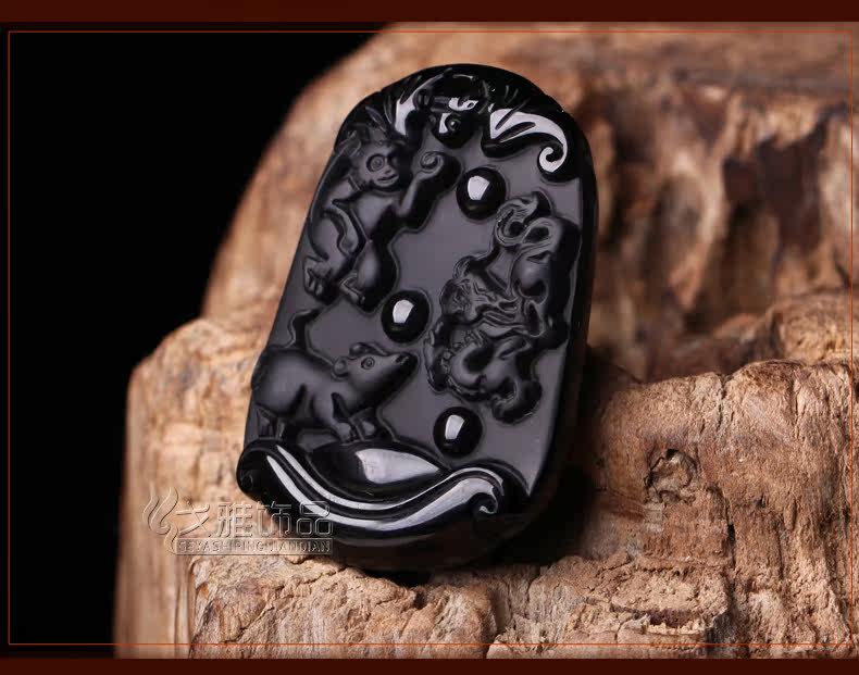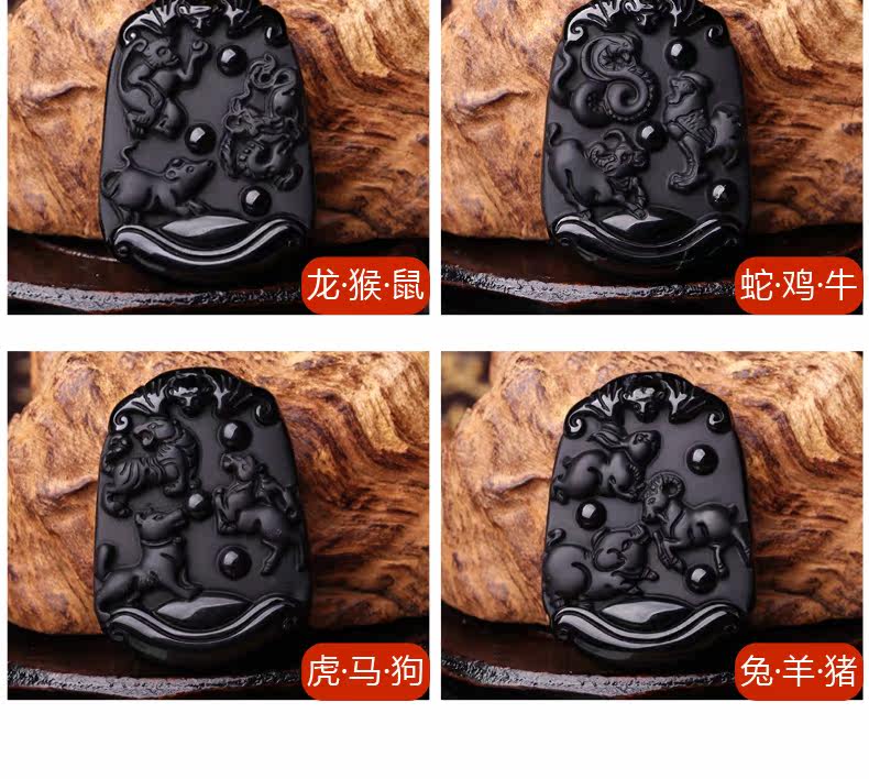 天然乌金黑曜石十二生肖吊坠项坠送吊坠绳礼物水晶饰品