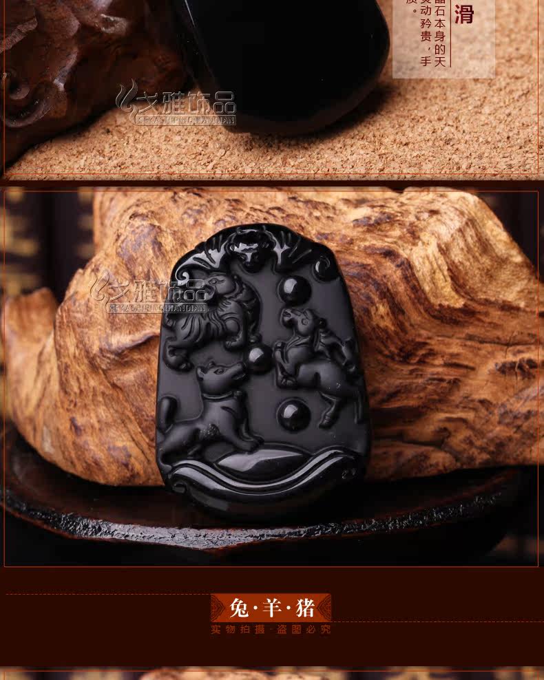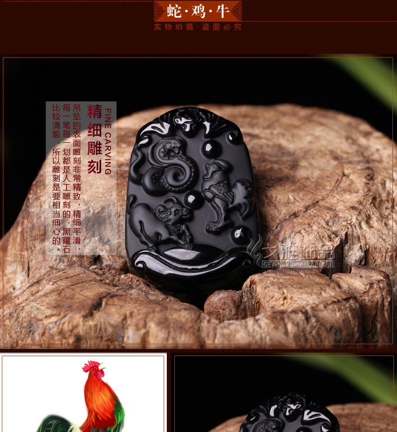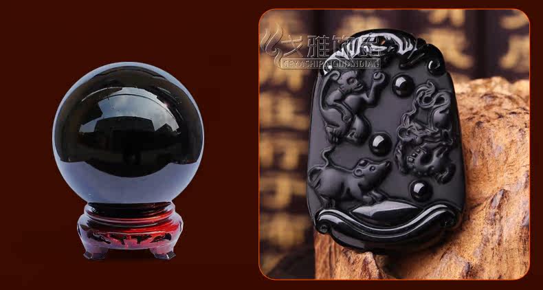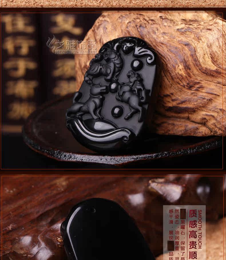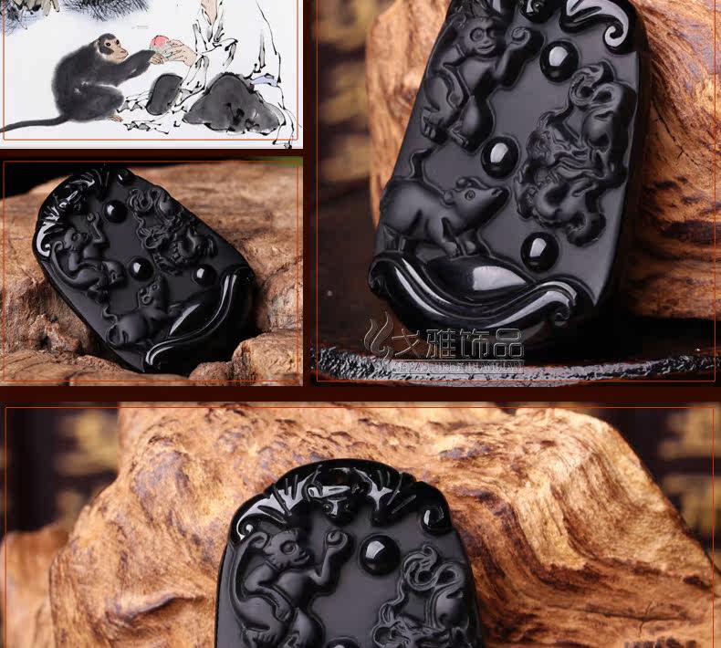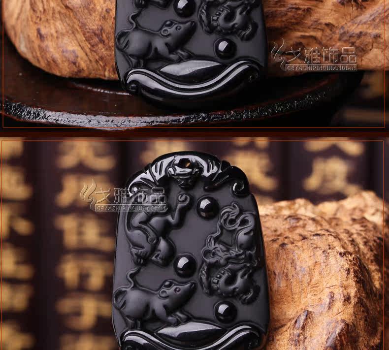天然乌金黑曜石十二生肖吊坠项坠送吊坠绳礼物水晶饰品