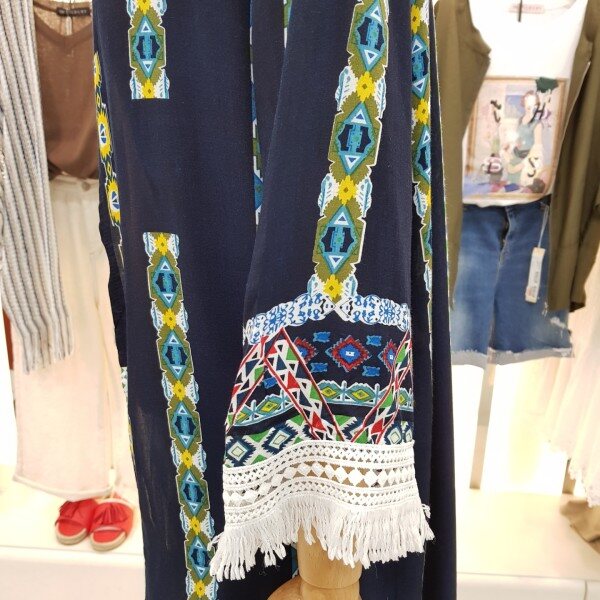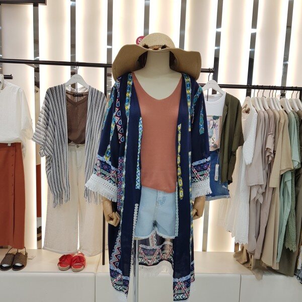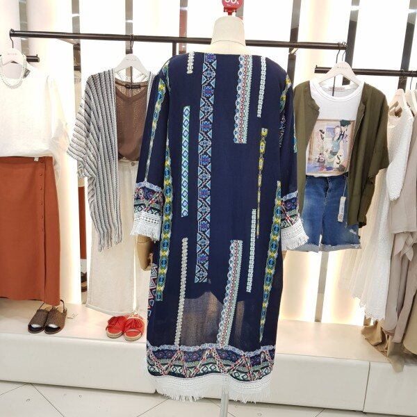 소매와 밑단부분 테슬 레이스장식이 있는 로브가디건입니다.반바지나 원피스와 함께 매치하여 트랜디하게 연출해보세요.