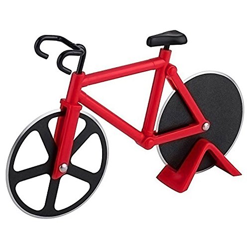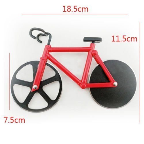 Description: 100% brand new and high quality Materials: Stainless steel Plastic (Harmless) Size:18.5X11.5cm Shape: Bicycle pizza cutter Fast and effortless dual wheel cutting without ruining the surface. Stainless steel wheels with a sharp non-stick edge, easy to clean. Fashionable cool lifelike design - 1/10th scale of a real life road bike, details including frame, wheels, seat and handle bars. Perfect gift - Come with a stand, good for display and ideal gift for the pizza lovers, cyclists or anyone want funny things. Especially great for cutting pizza in the kids birthday parties. Mini-sized - portable to take anywhere you want. Package included: 1 x Bike pizza cutter 1xStand 0