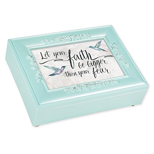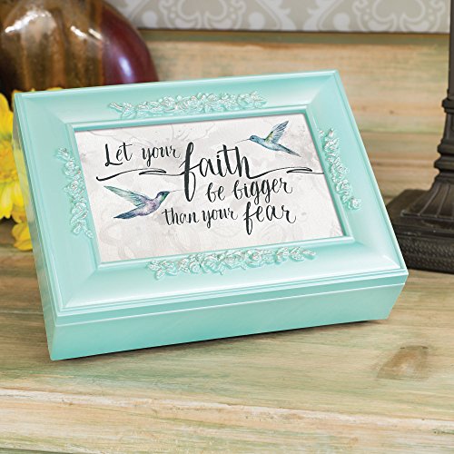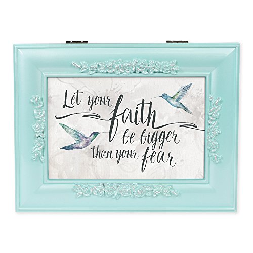 Faith Bigger Than Fear Mint Green Pearlescent Decorative Jewelry Keepsake Box