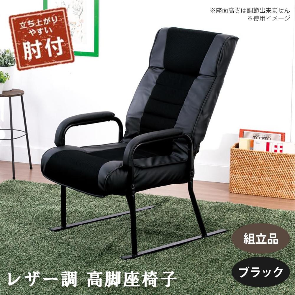 高級感のあるレザー調の高脚座椅子です。背もたれが7段階リクライニングでき、ゆったり座れます。 |