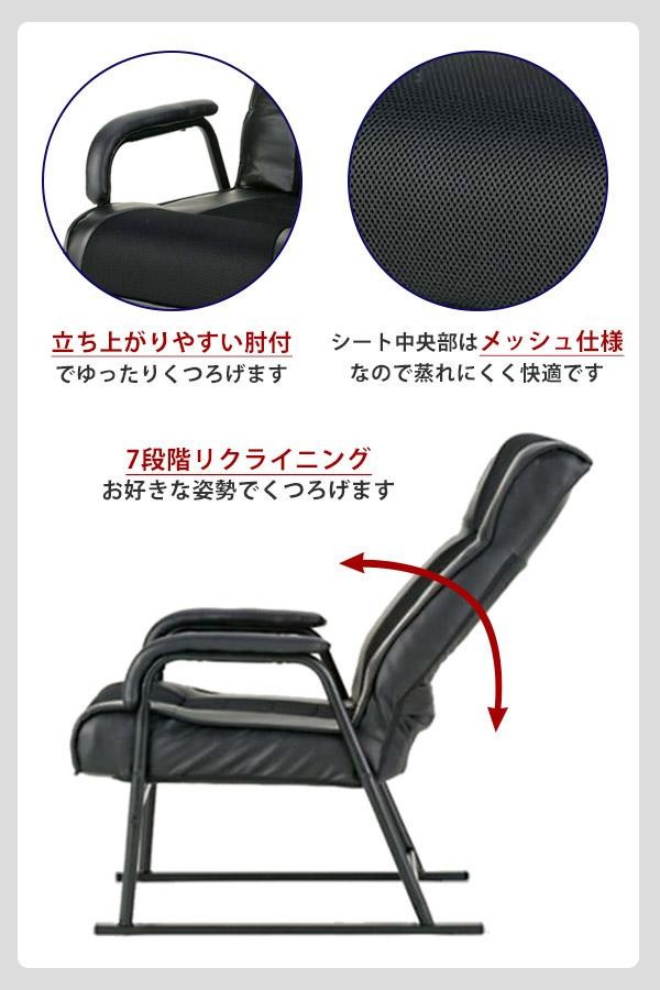 | 仕様 | 組立品 腰部:7段階リクライニング 耐荷重:約80kg 座面高さ調節不可 |
