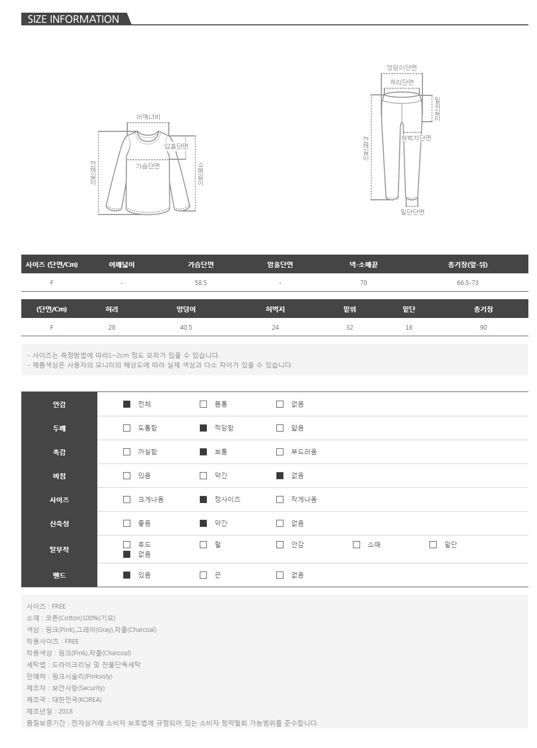 안감에는 기모처리로 부드럽고 따뜻한 착용감을 드리구요~