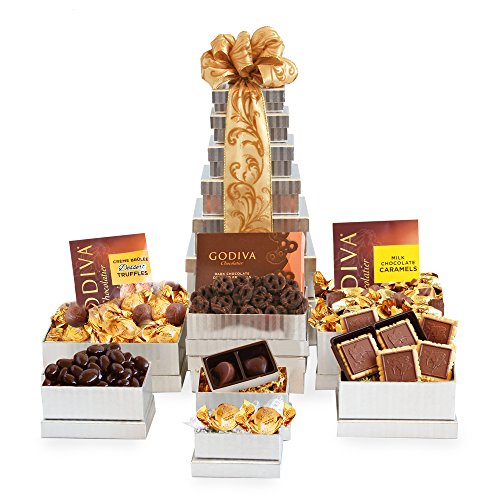 -. Title : California Delicious Golden Gift Tower Containing Godiva Chocolate