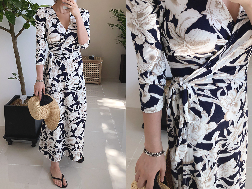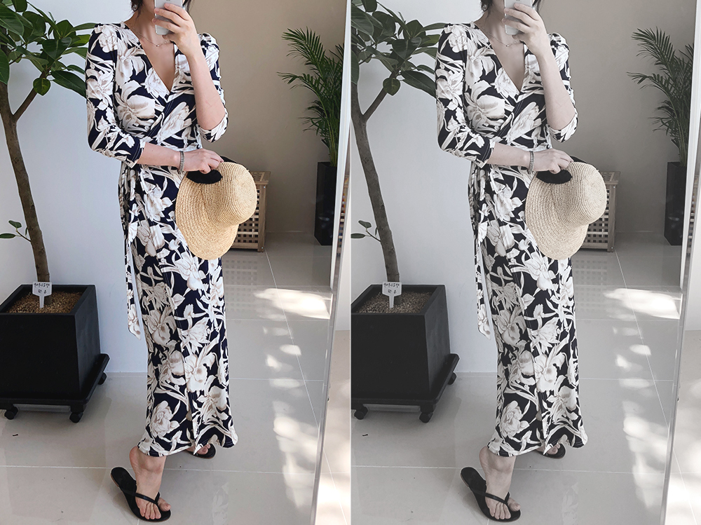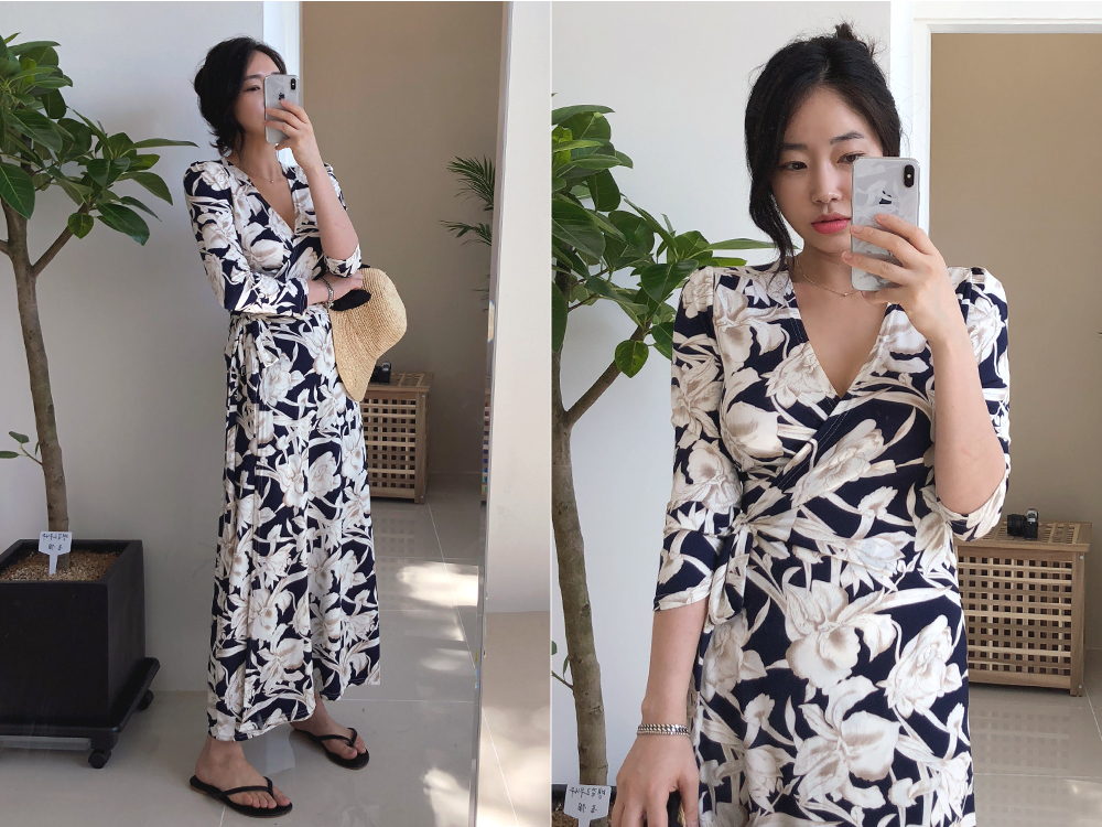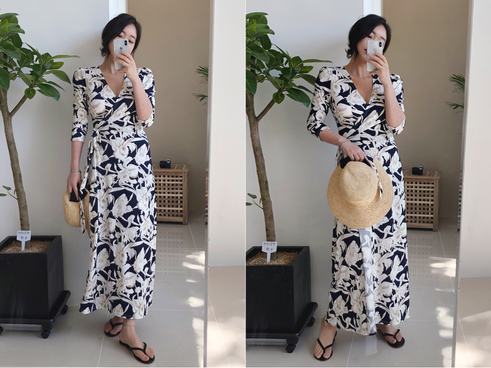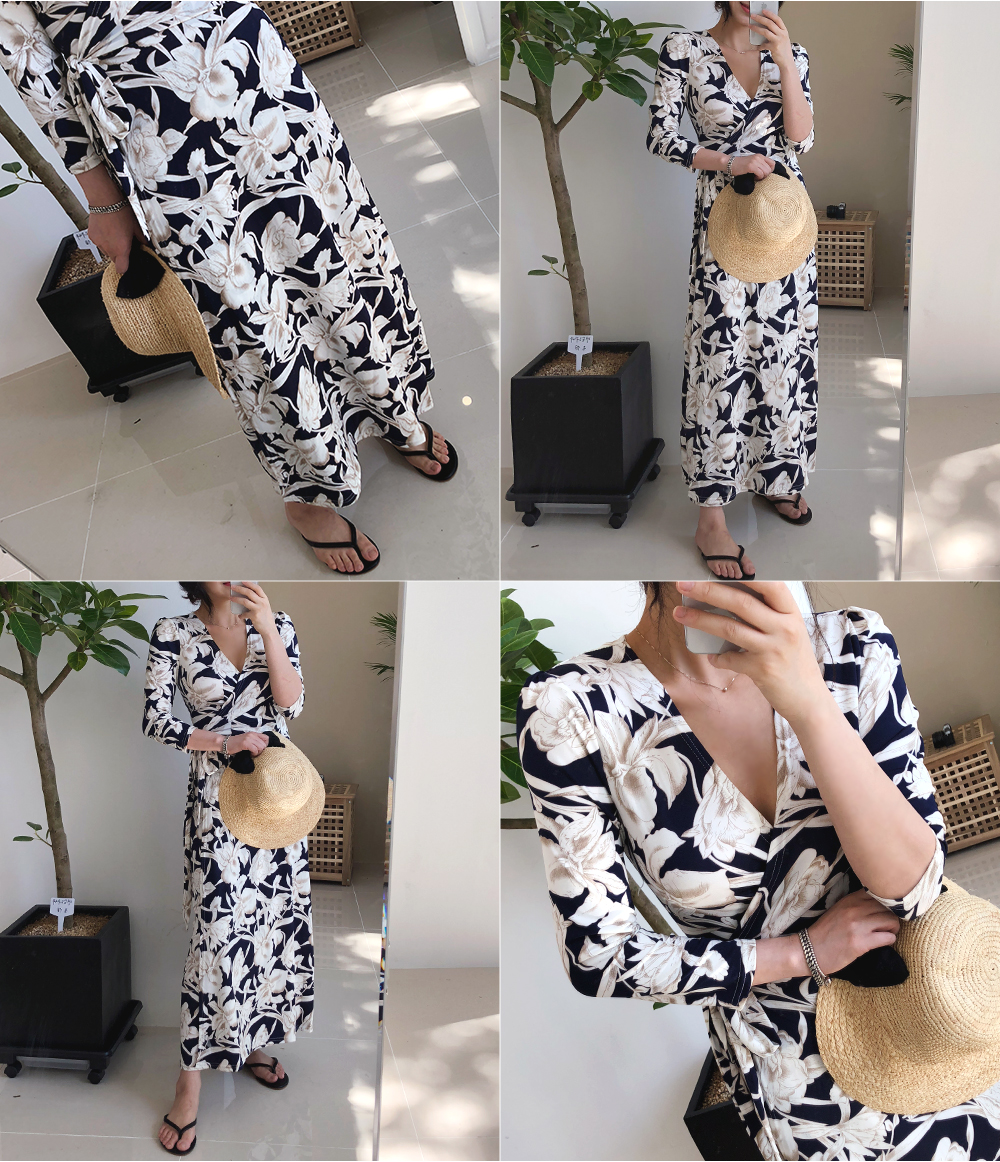 들어간 오픈 랩 스타일의 롱원피스에요:)