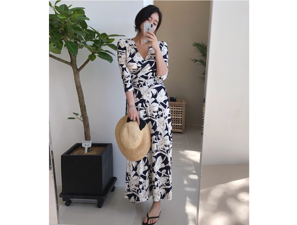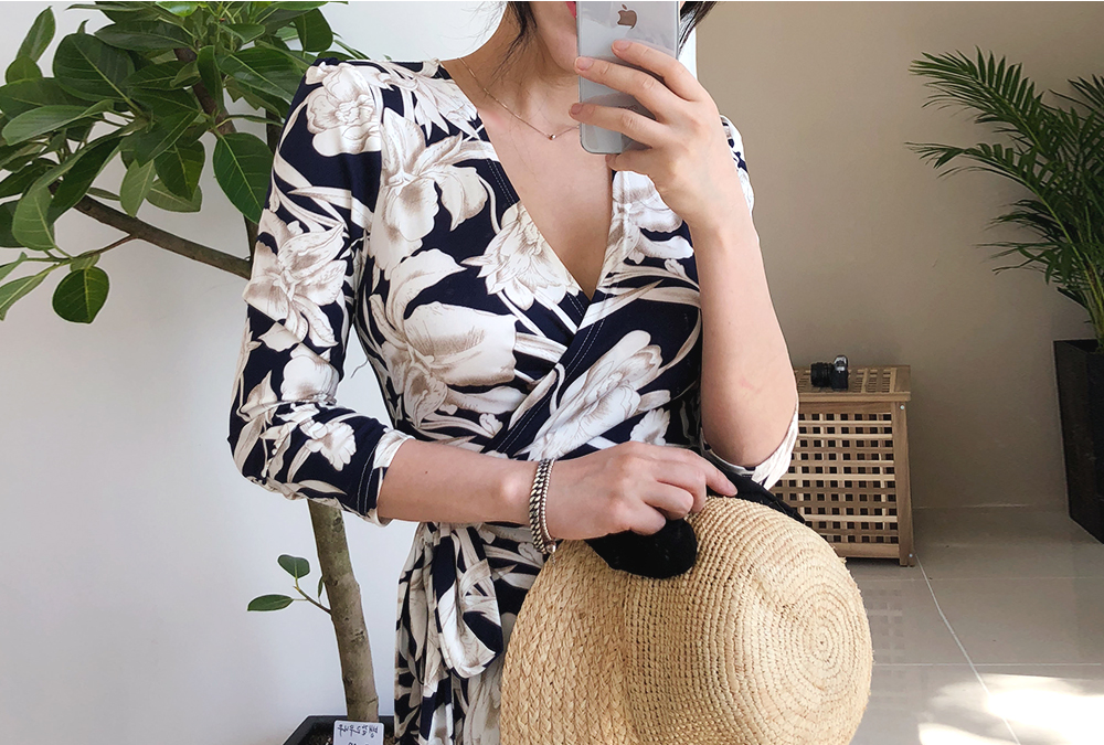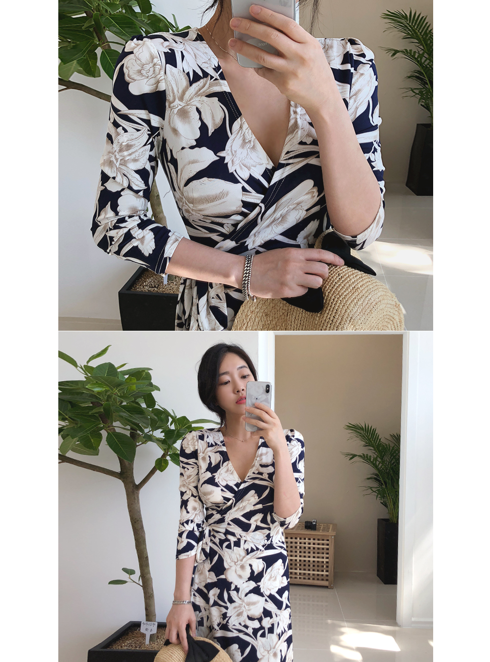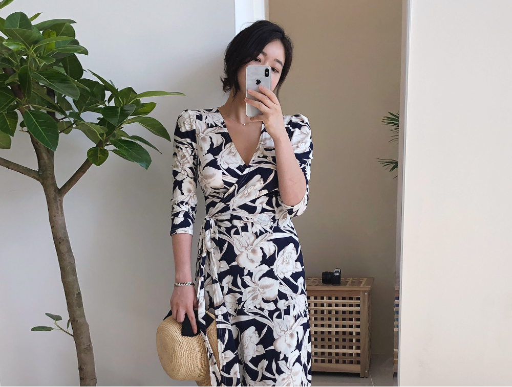 들어간 오픈 랩 스타일의 롱원피스에요:)
