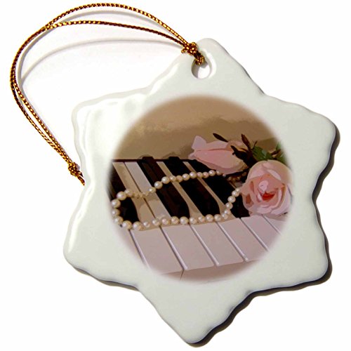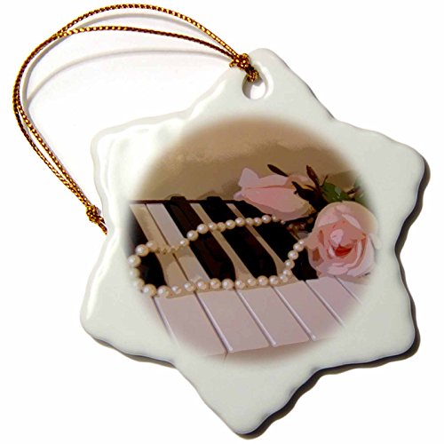 3dRose orn_35211_1 Pink Roses on Piano Keys Snowflake Porcelain Ornament, 3-Inch