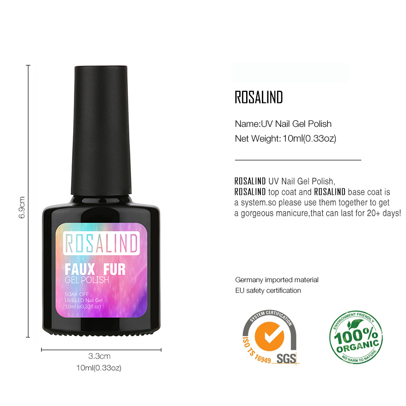 ROSALIND 10Ml Long Lasting Faux Fur Effect Nail Gel Soak Off UV LED Nail Art Gel Polish 12 Colors for Nail Art