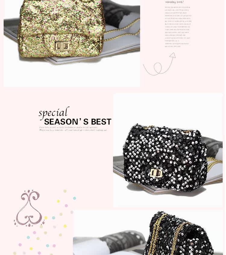 Shinning black / Shinning pink / Shinning hotpink / Shinning gold / Shinning red / Shinning blue / Pink / Black sequence / White sequence