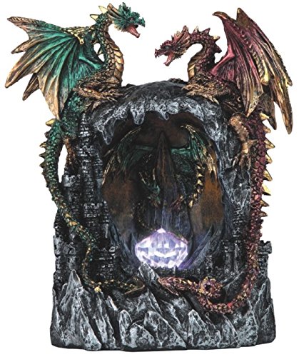 StealStreet SS-G-71483 LED Light Up Red/Green Dragons Standing Over Castle Staute, 8.25"/Large, Aqua