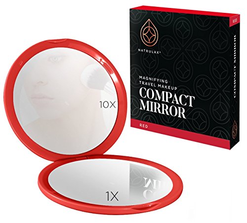 NATRULAX Superior Quality Dual Sided 10 x & 1 x Magnifying Compact Mirrors - 4 Inch Diameter-Ideal For Makeup & Eyebrow Removal -Perfect For Purses & Travel - Excellent Gift.
