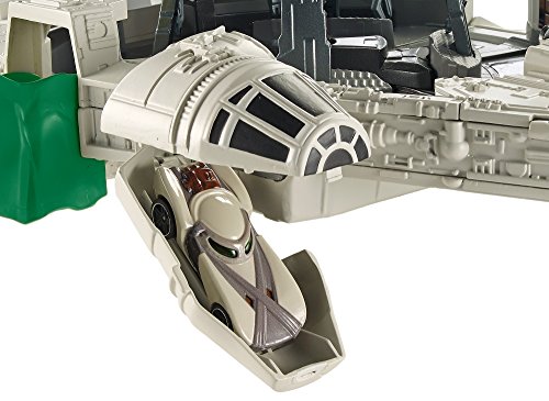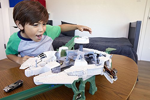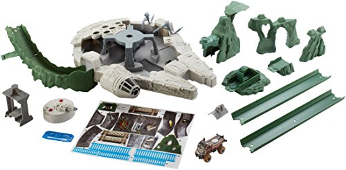 -. Artist : Hot Wheels -. Binding : Toy -. Brand : Hot Wheels -. EAN : 0887961385328 -. Feature : Prepare the Millennium Falcon Track Set for battle by fixing the hyperdrive and checking the engines! / The set includes a working elevator that lifts your Character Car up to areas in the Falcon that need fixing / Lower your character cars into the Smugglers bay then launch them out of the Falcon, along the Hot Wheels track towards the First Order to take them out! / Launch your character car out of the Falcon to take out the First Order / This stellar Star Wars set includes lights and over 20 sound FX -. IsAdultProduct : 0 -. Label : Mattel -. Manufacturer : Mattel -. Model : DWM85 -. MPN : DWM85 -. NumberOfItems : 1 -. PackageQuantity : 1 -. PartNumber : DWM85 -. ProductGroup : Toy -. ProductTypeName : TOYS_AND_GAMES -. Publisher : Mattel -. ReleaseDate : 2017-08-24 -. Size : n.a. -. Studio : Mattel -. Title : Hot Wheels Star Wars Millennium Falcon Playset -. UPC : 887961385328 -. Warranty : 1 year warranty against manufacturer defects