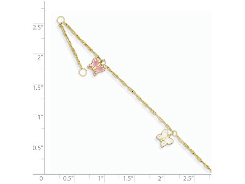 This impressive 10 Inch 14k Adjustable Enameled Butterfly Anklet, crafted in 14 kt Yellow Gold . This product measures 1.00 mm wide, 10.00 Inches long.Charm/Element Length: 7.5 mmCharm/Element Width: 7 mm. GIFT CARD OPTION WILL NOT BE AVAILABLE FOR THIS ITEM! UPC Code: 191320005568.Feature