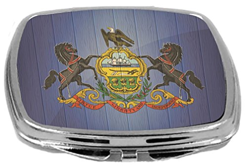 Rikki Knight Compact Mirror on Distressed Wood Design, Pennsylvania Flag, 3 Ounce