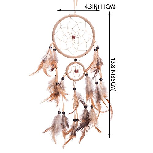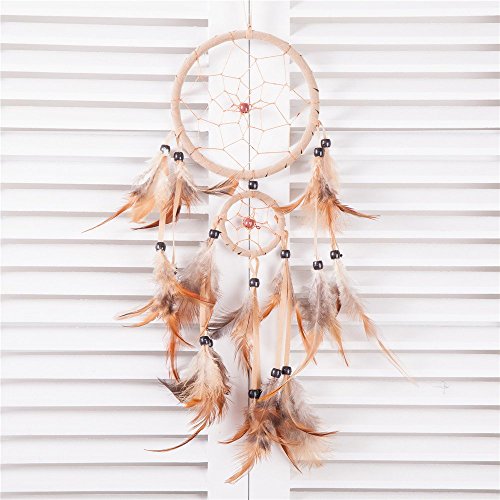 18" Traditional Beige Dream Catcher with Feathers Wall or Car Hanging Ornament 2 Circles