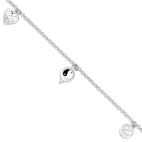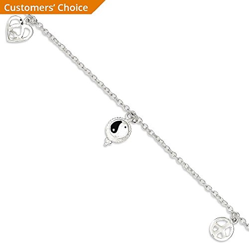 ICECARATS DESIGNER JEWELRY 925 STERLING SILVER HEARTS PEACE SIGN 8 INCH 1 INCH ADJUSTABLE CHAIN PLUS SIZE EXTENDER ANKLET FOR WOMEN ANKLE BEACH CHAIN BRACELET