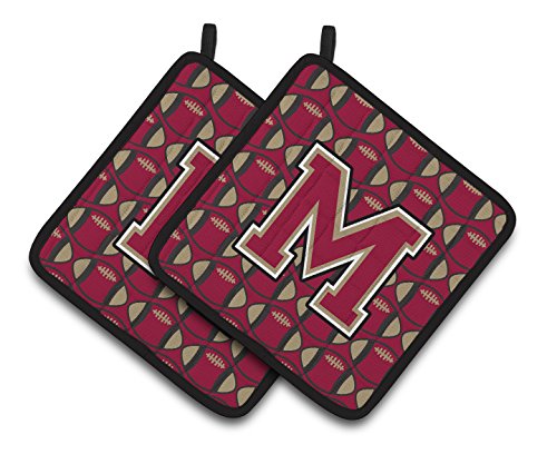 Caroline's Treasures Letter M Football Garnet & Gold Pair of Pot Holders CJ1078-MPTHD, 7.5HX7.5W, Multicolor