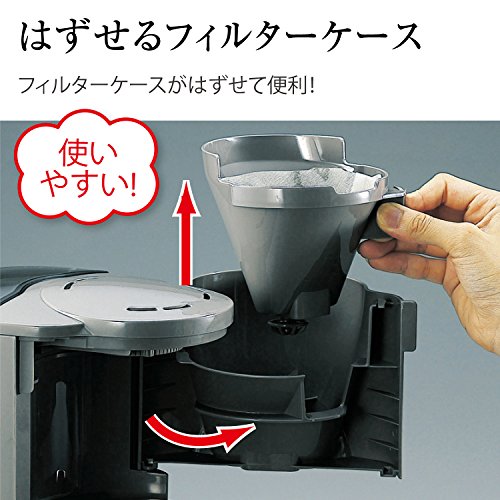 ◆ダブル加熱95℃抽出でコクと香りが楽しめるコーヒーメーカーヒーターで2回加熱し、熱湯と蒸気で豆全体を蒸らしてドリップ。コーヒー本来の芳潤なコクと香りが引き出されます。◆挽きたての味と香りが楽しめるミルつき自宅で豆を挽いて、コーヒー豆の新鮮なおいしさが味わえます。ミルははずして使えるため、いつでも清潔に使えます。◆フィルターケースとジャグが分離しているので注ぎやすい。◆はずせる水タンク◆はずせるスイングバスケット&フィルターケース◆しずく漏れ防止機構◆ミルケース用ブラシつき / ■ 仕 様 ■カラー:ブラック 容量:0.81L(目安:~約6杯分) 本体サイズ:幅28.0×奥行16.5×高さ31.0cm 重量:約2.5kg 消費電力コーヒーメーカー部:650Wミル部:100W コード長:1.3m 付属品:ミルケース用ブラシ /