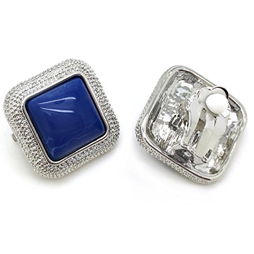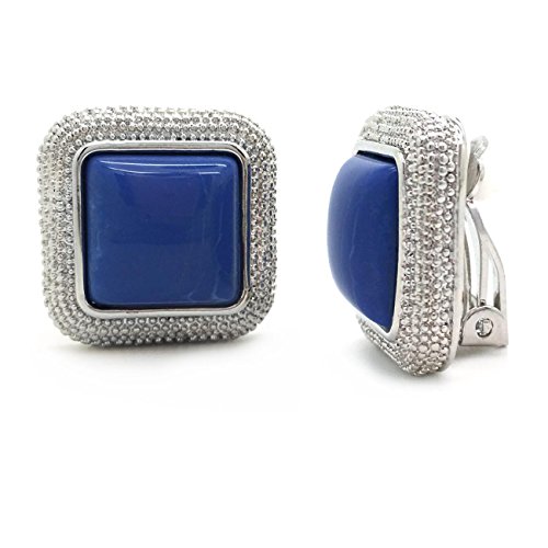 Made of alloy base metal, these classic square shaped earrings are showcasing blue resin with beadings detailings. Clip on backings secured these earrings with ease and comfort. For non pierced ears. These fashion clip on earrings will make the perfect choice for your special someone for Valentine's gift, Christmas gift, Mothers day gift, Birthday gift, Anniversary Gift, or Bridal party gifts.Feature